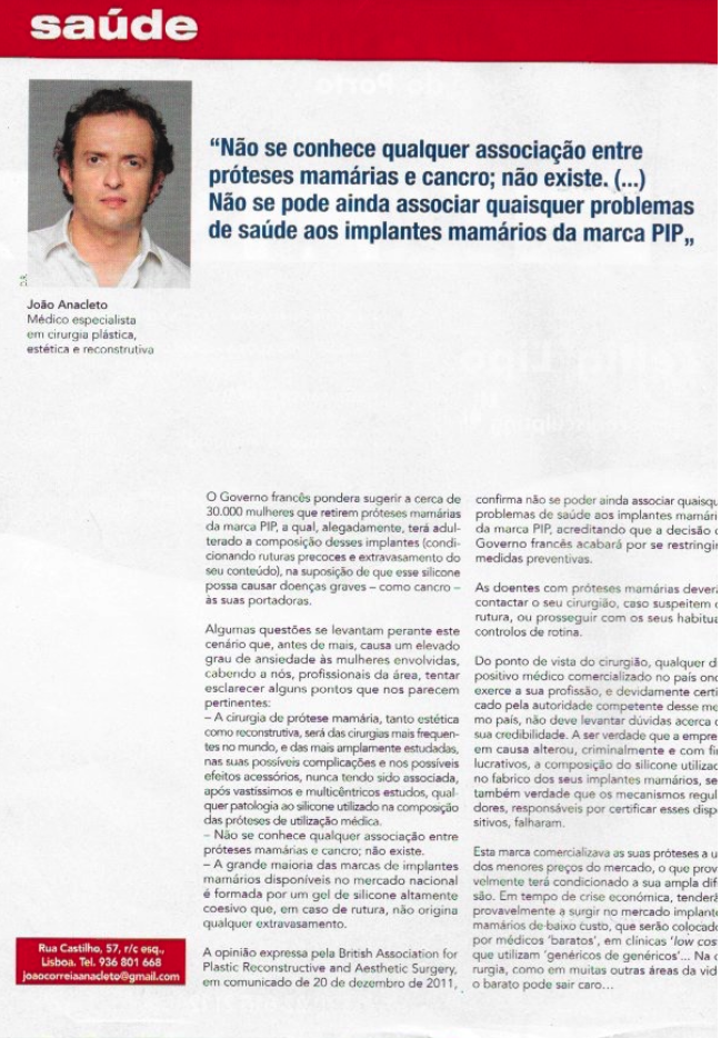 “Não se conhece qualquer associação entre próteses mamárias e cancro; não existe; (…) Não se pode associar quaisquer problemas de saúde aos implantes mamários da marca PIP…”