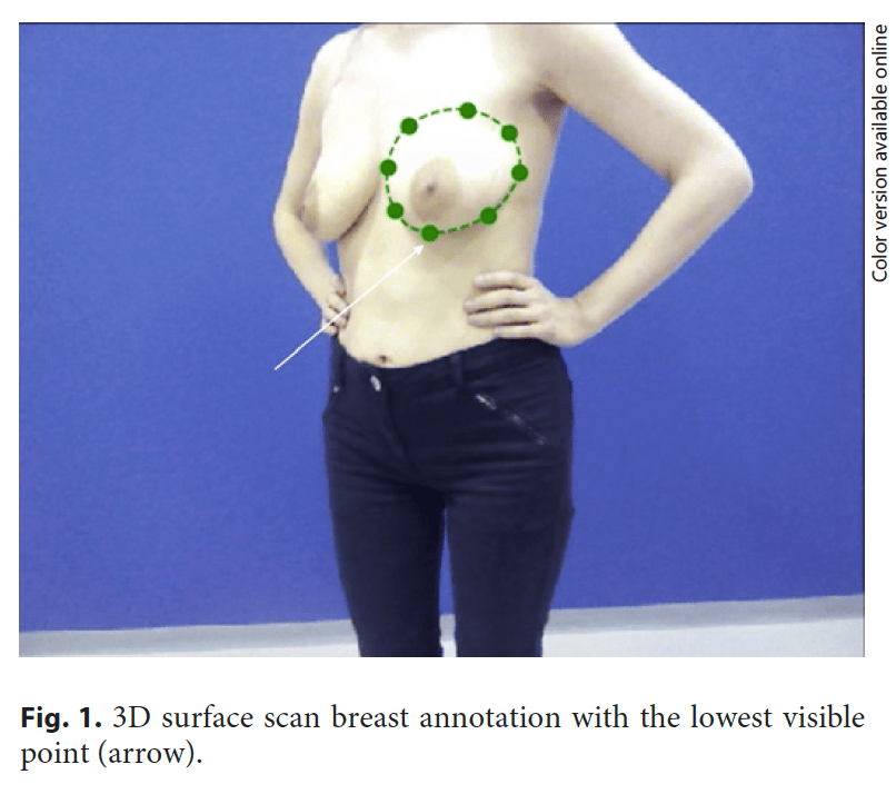 breast volume since the convex hull approach may not always accurately detect the anterior chest wall curvature, and it cannot simulate the major and minor pectoralis muscles. As the inframammary fold is not always visible, adopting the lowest visible point in the breast is a viable option (Fig. 1). The upper pole limit can also be difficult to define with a 3D surface scan reconstruction, despite a good agreement between different raters being achieved.